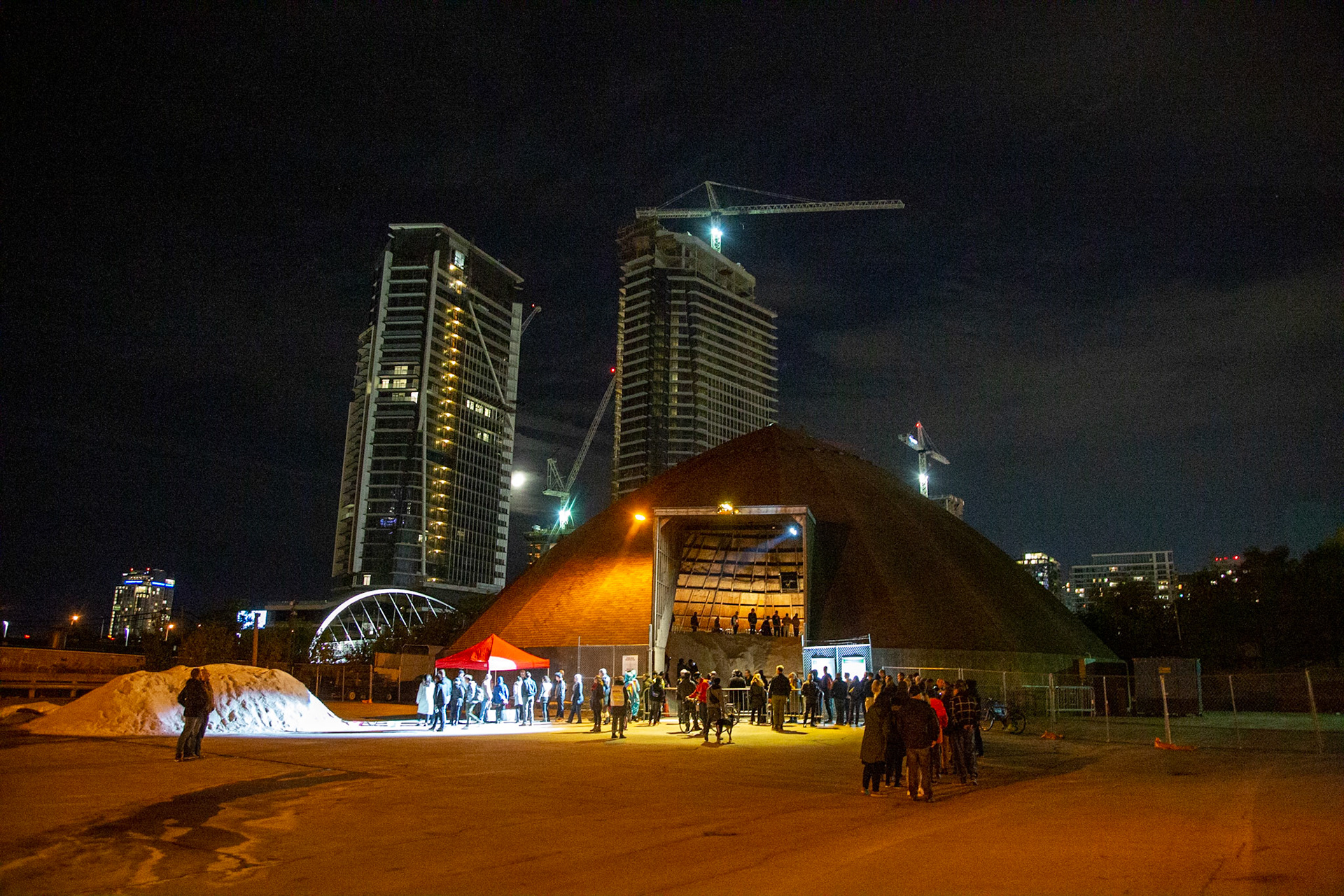 Normally it's a functional resource for the City's trucks to fill up on winter salt. At the Nuit Blanche event, it was opened up to reveal a cathedral dimension inside, with salt sculptures etched out by a suspended 3D printer